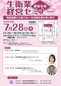 「生衛業経営セミナー」を 2025年7月28日(月)13時30分から16時まで会場:ANAクラウンプラザホテル松山南館2階サファイヤにて開催いたしますので、ぜひご参加ください。(参加料無料)参加ご希望の方は、チラシを参照 […]
